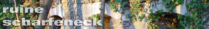 Die Burg Scharfeneck bei Mannersdorf am Leithagebirge wurde schon oft mit der kleineren Burg Scharfeneck bei Baden verwechselt. Wir zeigen hier jene im "Naturpark Wüste", bei Mannersdorf. Die Anlage dürfte um das Jahr 1000 erbaut wurden sein, was aber nicht urkundlich belegt ist. Als Grenzburg von Ungarn erbaut, reicht der Weitblick vom Leopoldsberg bei Wien, bis weit nach Süden ins östliche Alpenvorland. Ihren Namen trägt sie nach dem Geschlecht der Scharfenecker, das bei den ungarischen Königen in hohem Ansehen stand. Die erste urkundliche erwähnung ist im Jahre 1386 gesichert, allerdings nicht als Name der Burg sondern vielmehr des ungarischen Geschlechts der Scharfenecker. Ein Johann von Scharpeneck war Kastellan der Burg Landskron, seine Verwandten hochangesehene Gutsbesitzer in verschiednen Teilen Ungarns. 1390 gestattet König Sigismund von Ungarn, den Scharfeneckern ihren Besitz an wen immer zu vergeben, "...woferne damit nicht Entfremdung vom ungarischen Territorium verbunden ist." Mit den österreichischen Grenzadel lagen sie ständig im Streit. Die Scharfenecker überfielen 1396 Deutsch-Altenburg, darauf fallen die Hundsheimer in Ungarn ein. Die Scharfenecker eigneten sich 1404 Besitzungen der Herrschaft Trautmannsdorf an. 1408 überfällt Stuchs von Trautmannsdorf die Herrschaft Scharfeneck, wofür die Scharfenecker wiederum sich 1412 blutig in Edelsthal und Deutsch Haslau rächten. Es ging rauh zu damals, und es waren nicht nationale Angelegenheiten, sondern es waren territoriale Kämpfe die man damals führte. Bald dürften die Herren von Scharfeneck aber ausgestorben bzw. um den Besitz gekommen sein, denn 1417 wird die Burg als Neuscharfeneck, später Wyscharffnyk der ungarischen Könige genannt. Die kunstvoll gemeißelten teile, vor allem die schönen Fensterstöcke stammen aus dieser Bauzeit, in der die Burg einen Aus-, Um- und Wiederaufbau erfihr. Vor allem die englischen und französischen Burgen der damaligen Zeit dienten als Vorbilder. Bei wechselnden Besitzer blieb sie bis 1476 bei Ungarn, dessen König Matthias Corvinus sie verpfändete und die Burg jetzt Ecleszeg nannte. Er verkaufte sie sogar, um den Preis von 6000 ungarischen Goldgulden an Ulrich von Grafeneck. 1493 bemächtigte sich der Kaiser Maximilian I. der Herrschaft. 1555 zerstörte ein Blitzschlag den Burgfried.