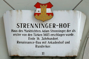 Das wohl stattlichste Renaissancegebäude Perchtoldsdorfs ist der Strenningerhof, Marktplatz 3, mit einem besonders schönen Arkadenhof mit toskanischen Säulen und einem kleinen Runderker an der Südwestseite. Das Ende des 16. Jahrhunderts entstandene Gebäude ist nach Adam Strenninger benannt, jenem unglücklichen Marktrichter zu Perchtoldsdorf, der bei dem von Streifscharen 1683 verübten Massaker nach der Überlieferung als erster niedergemetzelt wurde.