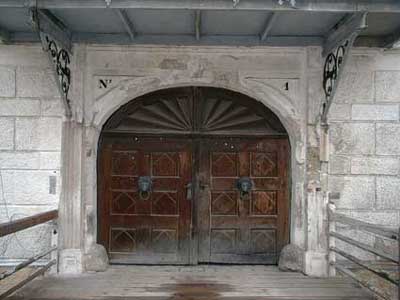 Das ist das mächtige Eingangstor des Schlosses.