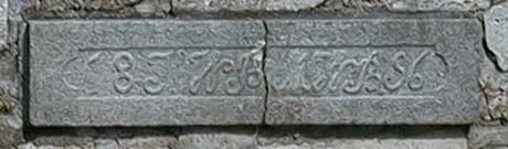 Detail des Steins der in die Brücke eingearbeitet worden ist. Wir vermuten das darauf steht: 18 J H * M H 86