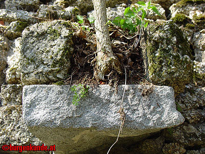 An der äußersten Ringmauer ist dieser Ausgußstein zu sehen, der sich direkt unterhalb der Stallungen befindet.